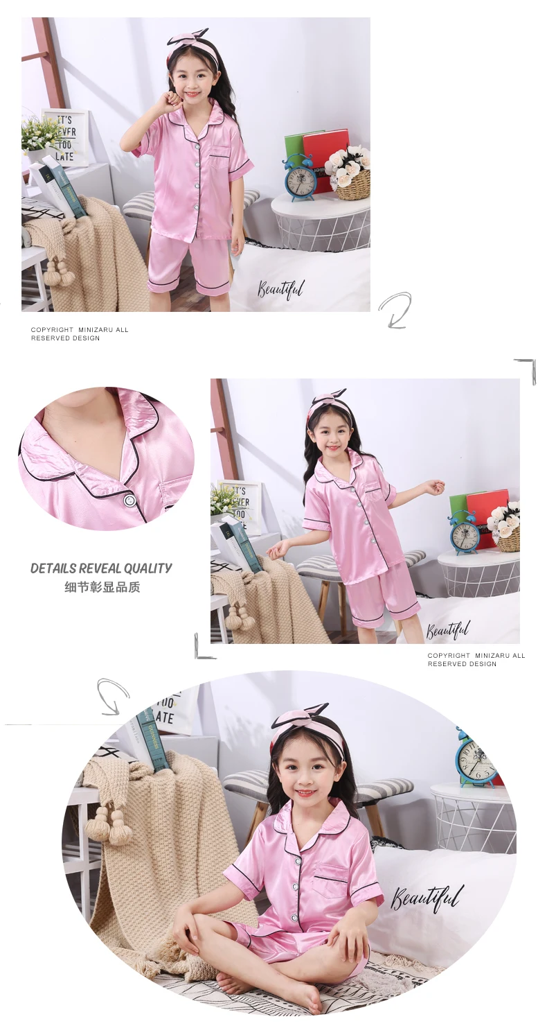 Летние Детские пижамные комплекты, Шелковый костюм с короткими рукавами
