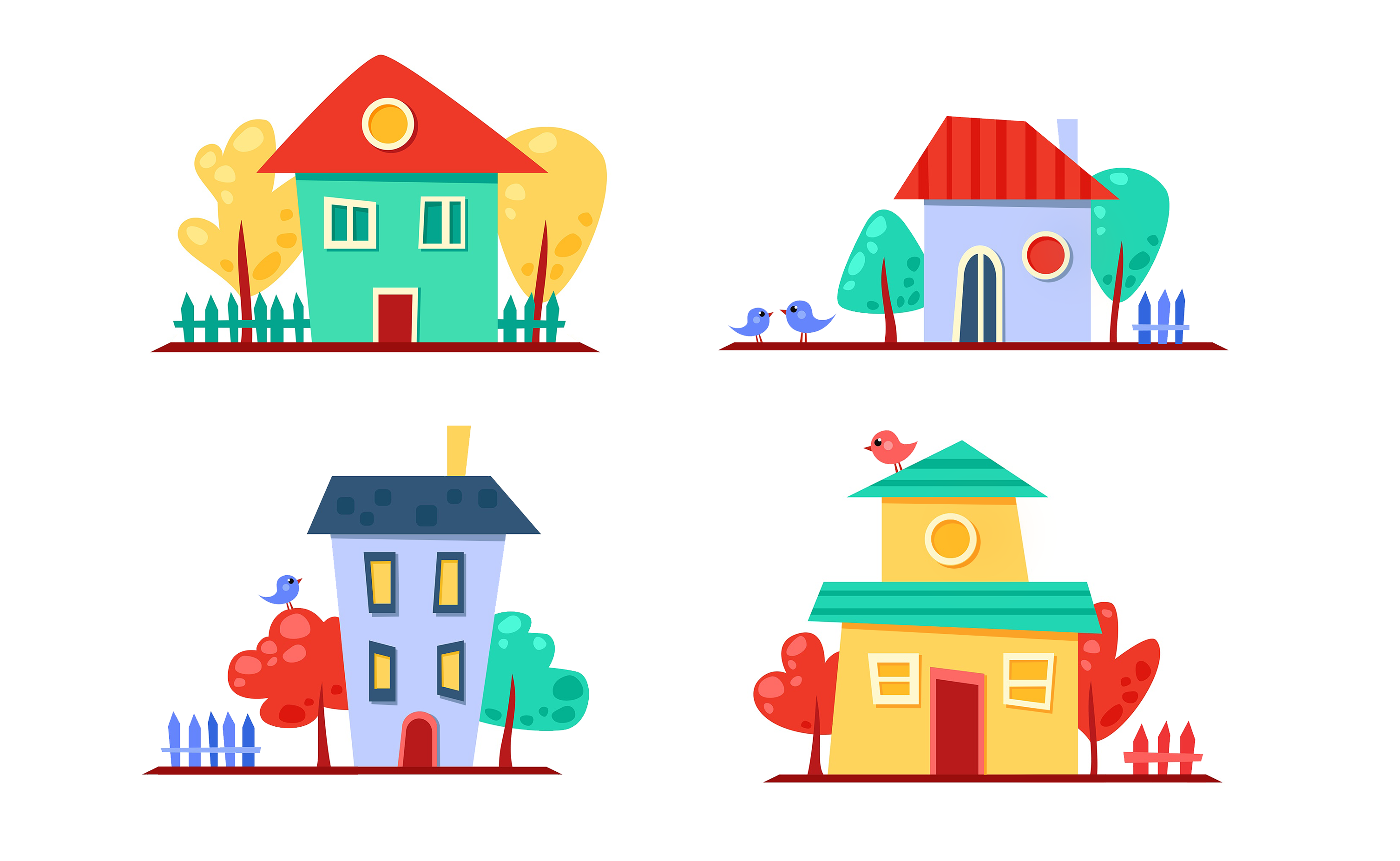 Иллюстрация Забавные домики в стиле детский