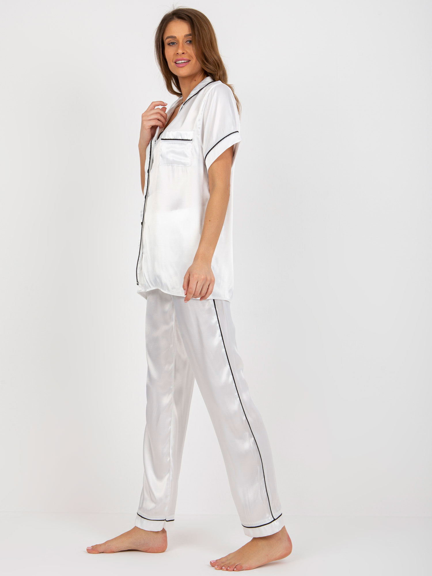 Сатенена пижама от две части в бяло